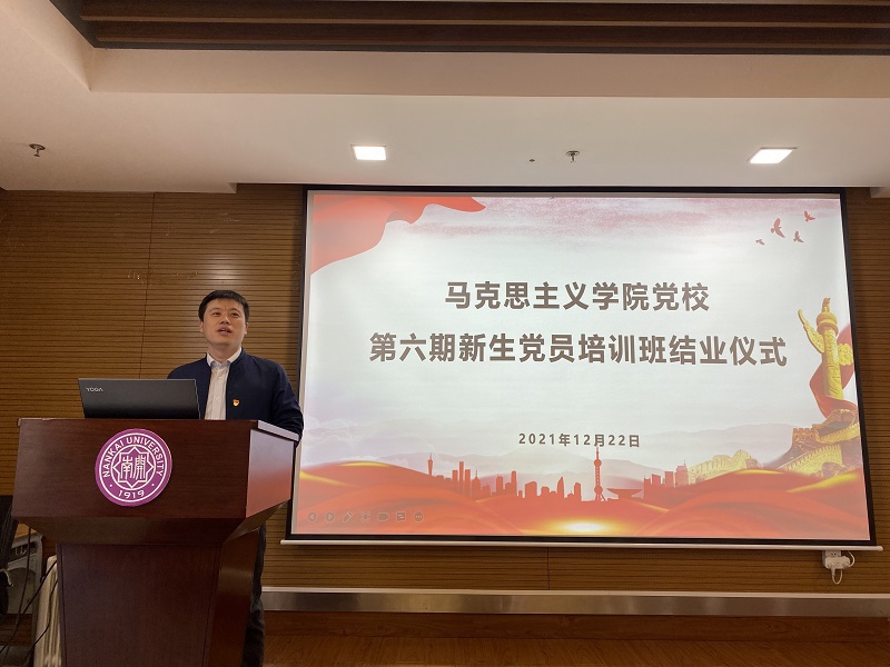 12月22日,必威betway西汉姆党校第六期新生党员培训班结业仪式在学院113室顺利举行。学院党委副书记兼副院长王友江出席活动,2021级全体学生党员参加,党校办公室张诗瑶主持。