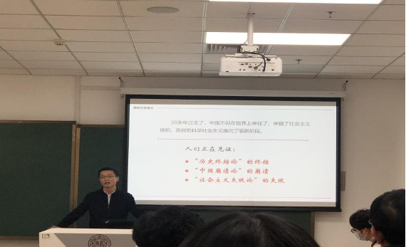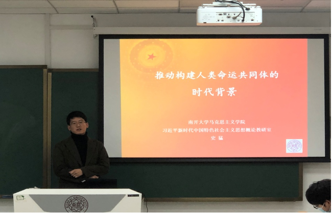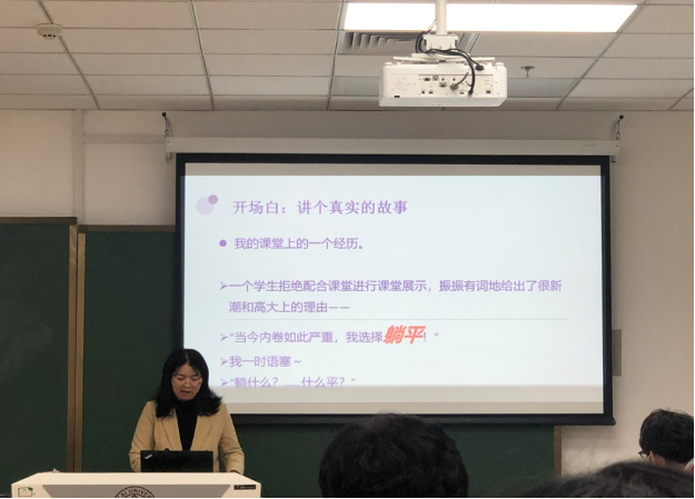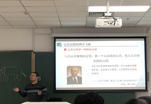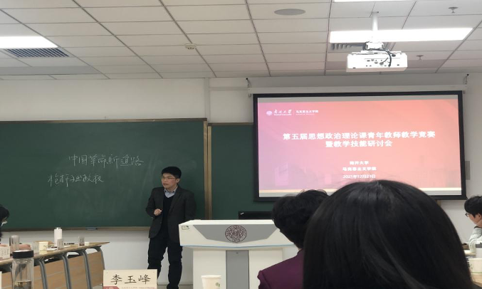 学院青年教师孙炳炎(毛泽东思想与中国特色社会主义理论体系概论教研室)、袁航(马克思主义基本原理教研室)、李星(思想道德与法治教研室)、史猛(习近平新时代中国特色社会主义思想概论教研室),分别以“新时代的重大意义”、 “人的认识过程的两次飞跃”、“人生能否‘躺平’”、“推动构建人类命运共同体的时代背景”为主题,进行了精彩的教学展示。