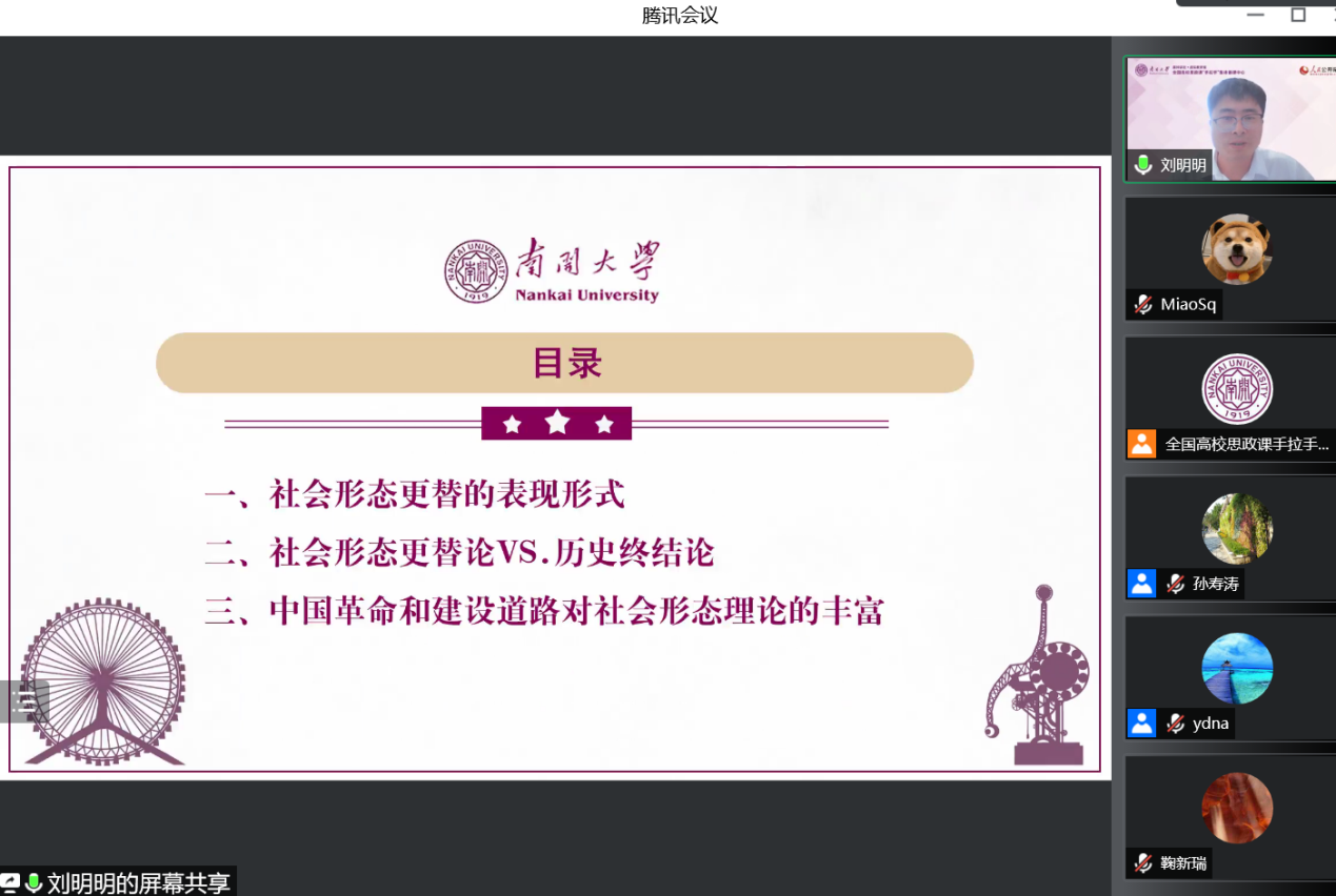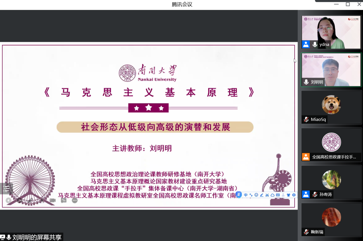 备课会最后,主持人叶冬娜老师作总结。她指出,刘老师从理论层面分析了社会形态从低级到高级演进所体现的马克思主义基本原理,并且从现实层面阐明了资本主义制度不是历史的终点,深刻阐释了中国道路的合理性,体现了理论与实际相结合、历史和现实相贯通的教学特点,做到了以透彻的学理分析回应学生,以翔实的资料引导学生,确实是一次精彩的示范课。