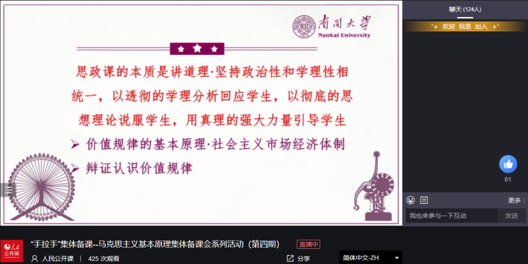 参会教师们纷纷表示,依托马克思主义基本原理集体备课系列活动,有利于深入研究马克思主义基本原理课程的授课内容、授课规律、授课方法,深化对马原理课程重点难点问题的理解,进一步提升马原理课程的教学实际效果。