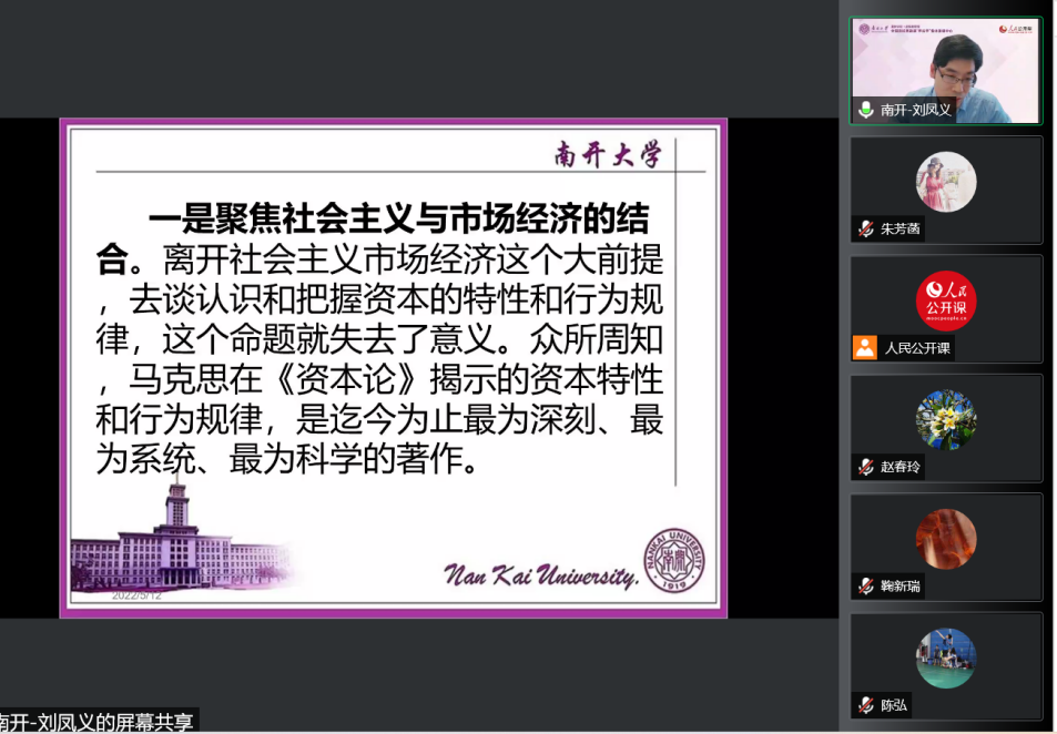 综合以上,刘老师强调,要“发挥社会主义市场经济的制度优势,利用好和驾驭好资本行为”,并从五个方面对如何实现驾驭资本进行阐释。第一,加强党对经济工作的集中统一领导;第二,鼓励和引导资本进入实体经济,不断做大“蛋糕”;第三,引导资本要遵循资本循环规律;第四,发挥有为政府作用;第五,在完善“自觉的市场经济”中驾驭好资本。刘老师强调,加强新时代条件下资本理论研究是习近平总书记的明确要求,思政课教师要共同努力,要研究好、讲授好新时代的马克思主义基本原理、马克思主义政治经济学原理。