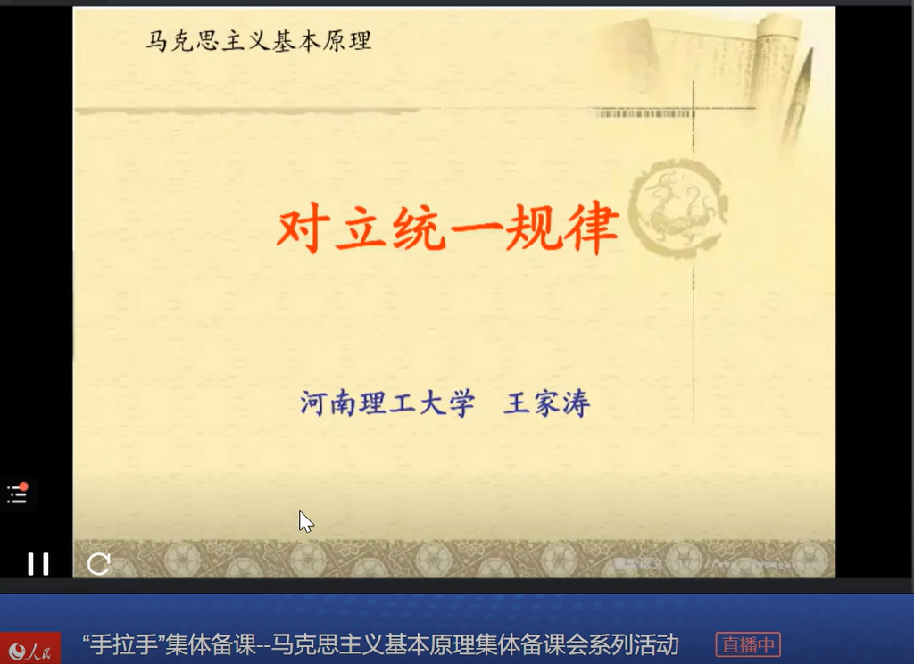 本次集体备课会,首先邀请河南理工大学必威betway西汉姆青年教师王家涛做了题为“对立统一规律”的教学展示。教学展示伊始,王老师指出,哲学原理是马克思主义的理论基础,对于大多数同学,特别是理工科专业的同学,学习哲学是比较困难的事情。他表示,在教学过程中要使学生明白,马克思主义哲学原理不仅是传授理论知识的重要途径,还是提升思维能力的重要手段。王老师强调,唯物辩证法的一系列规律和范畴揭示出世界的普遍联系和永恒发展,它既是世界观,又是认识世界和改变世界的方法论。作为唯物辩证法实质和核心的对立统一规律,为人的认识活动提供了方法论上的遵循。王老师认为,学生的日常学习困惑往往反映出他们还未充分掌握分析问题的方法,因此讲好对立统一规律,有助于帮助同学们解疑释惑。