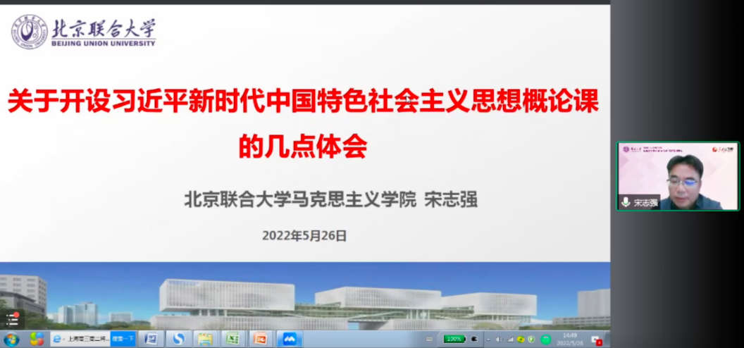 他说道,习近平新时代中国特色社会主义思想,是我们党成功应对当今世情、国情、党情深刻变化的理论产物,也是新时代中国共产党的思想旗帜,开设“习近平新时代中国特色社会主义思想概论”课程意义重大。他表示,此次备课会定能通过云端进一步促进教学经验交流,推动思政课教师提升教学水平,取得提高教学质量和深化对习近平新时代中国特色社会主义思想认识的双重效果。