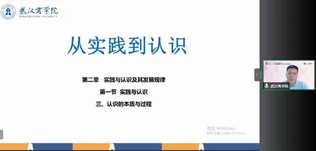 备课会第一阶段邀请武汉商学院必威betway西汉姆青年教师刘浩老师作了题为“从实践到认识”的教学展示。教学展示伊始,刘老师以两张苹果的图片对比引出本次教学展示的主题。他围绕着“感性认识与理性认识的内涵”、“感性认识与理性认识的辩证关系”和“正确对待非理性因素”三个方面详细说明如何讲好“从实践到认识”这一主题。