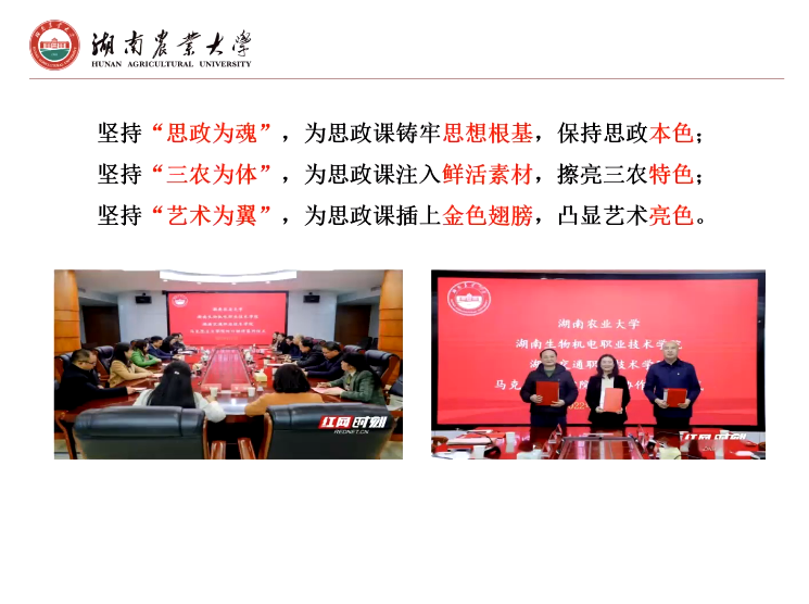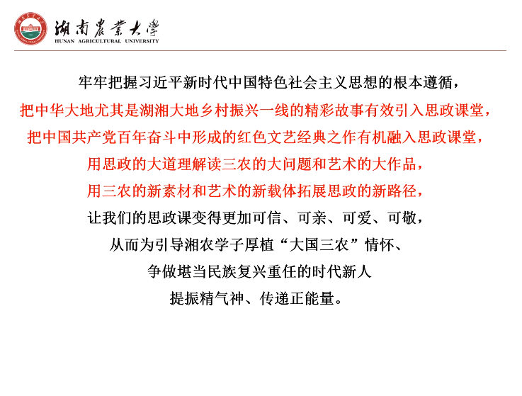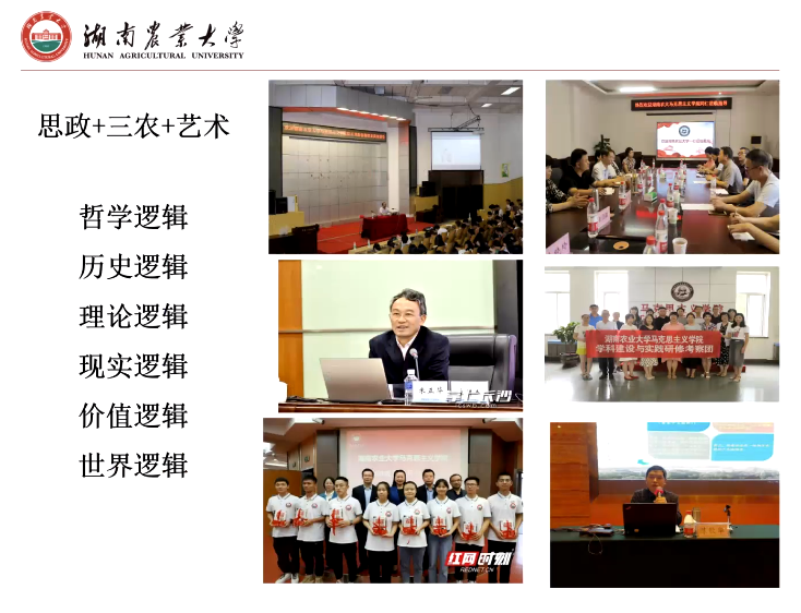 本次集体备课会,首先邀请湖南农业大学必威betway西汉姆院长胡艺华教授做了题为“‘思政+三农+艺术’——让思政金课深深植根于乡村振兴一线”的教学展示。随着展示的进行,与会师生沉浸在历史与现实交融、思想与艺术交织的氛围中。