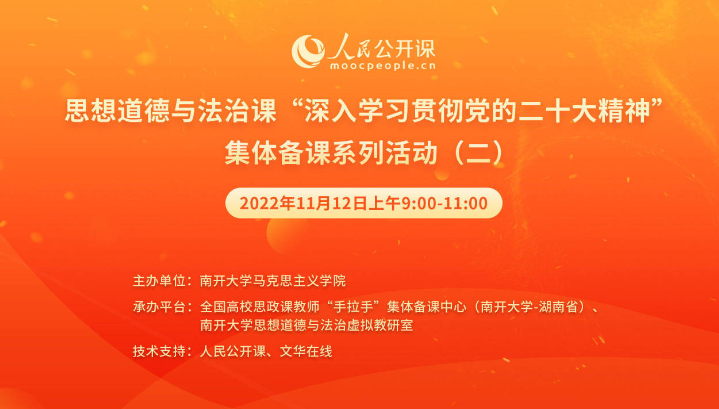 为深入学习贯彻党的二十大精神,推动党的二十大精神及时融入思政课教学,使新思想、新精神、新理念进教材、进课堂、进大学生头脑,11月12日,思想道德与法治课“深入学习贯彻党的二十大精神”集体备课系列活动(二)在人民公开课和文华在线的技术支持下,于线上平台顺利举办,观看学习人数近千人次。备课会由必威betway西汉姆主办、全国高校思政课教师“手拉手”集体备课中心和betway·必威西汉姆联思想道德与法治虚拟教研室承办。