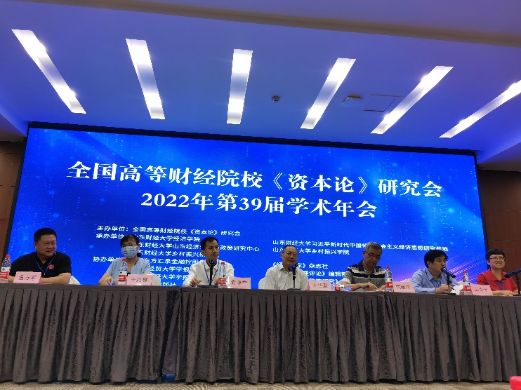 为喜迎党的二十大胜利召开,深入学习贯彻党的十九届六中全会精神,深入持续推进研究《资本论》,推动和促进中国经济社会与高校中国特色社会主义政治经济学教学高质量发展,7月26日至27日,全国高等财经院校《资本论》2022年第39届学术年会在山东济南召开。本次会议由全国高等财经院校《资本论》研究会主办,山东财经大学经济学院、习近平新时代中国特色社会主义经济思想研究基地、山东经济理论与政策研究中心、乡村振兴学院、乡村振兴研究院承办。会议采取“线上+线下”的方式,中国人民大学、betway·必威西汉姆联、武汉大学、西南财经大学、江西财经大学等30余个单位的专家学者参会。95人参加线下会议,1397人参加线上会议。