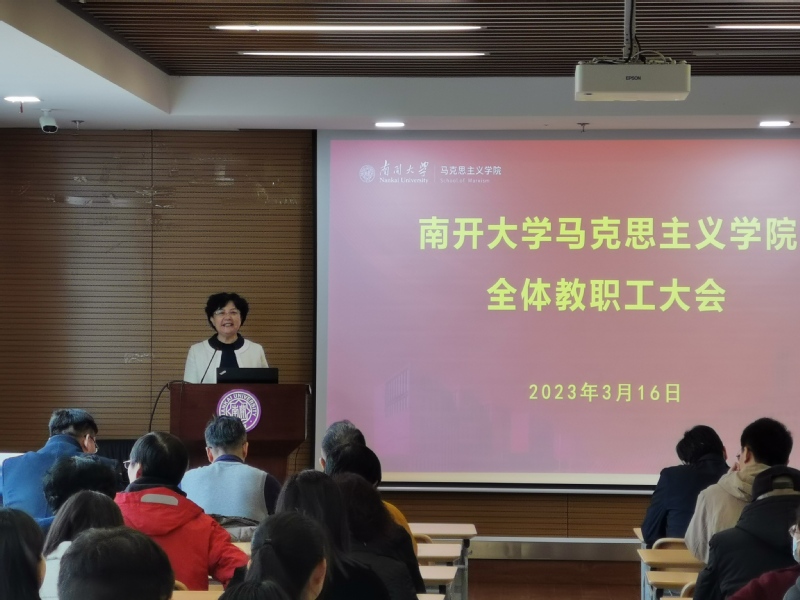 党委书记付洪在讲话中指出,2022年是不平凡的一年,在迎庆党的二十大胜利召开的热潮中,学院全体教职工团结奋斗,高标准完成各项任务目标,接续实现全国重点马院高质量发展,展现出马院作为“标杆”应有的担当作为。她强调,在下一步工作中,要坚持严格贯彻落实党中央、教育部、市教育两委、学校党委关于马院建设、思政课教学等有关要求;持续强化意识形态阵地管理,严格遵守课堂教学纪律,强化教学全过程管理;全面加强学术活动管理、网络信息和平台等管理;持续抓紧抓实师德师风建设,坚决落实师德师风“一票否决”制;持续做大做强正面宣传引导,讲好新时代南开故事,弘扬正能量。2023年是全面贯彻落实党的二十大精神的开局之年,全院师生要继续以永不懈怠的精神状态和踔厉奋发的昂扬斗志,在新时代新征程开创马院发展的新局面!