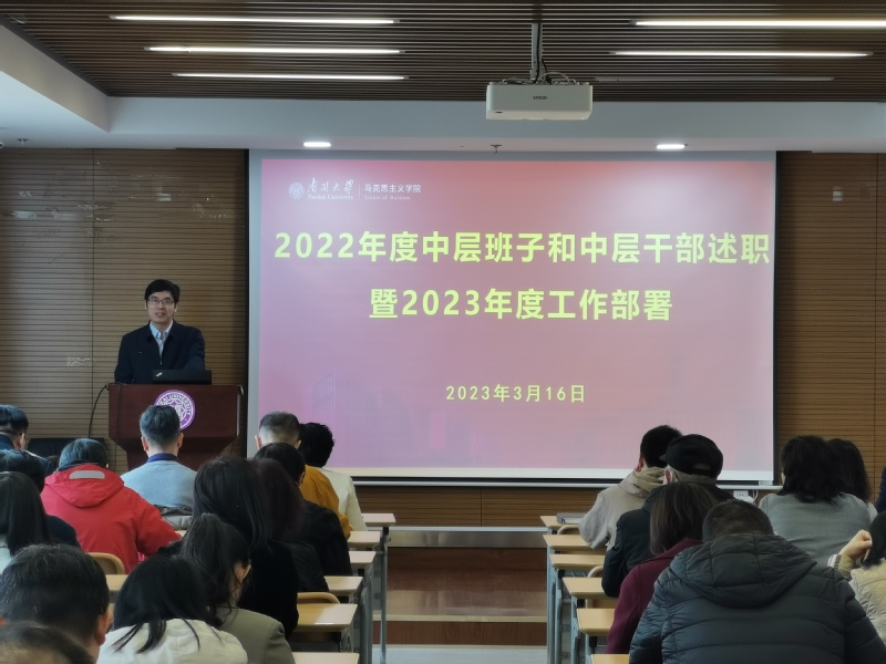 院长刘凤义代表班子报告了2022年度学院在坚持党建引领、推进思政课改革创新、提高人才培养质量、提升科研成果数量质量、推动平台建设、服务社会需要和落实服务保障等方面取得的一系列成绩和重大突破,部署了学院2023年重点工作任务:把学习研究宣传贯彻党的二十大精神作为首要政治任务,紧密围绕全国重点必威betway西汉姆高质量发展的主线,牢牢守住师德师风、学术诚信两条底线,着力开展思政课教学质量提升、科学研究质量提升、师资队伍质量提升、人才培养质量提升四项工程,持续探索马克思主义理论教育教学规律、学科发展规律和人才培养规律,持续推进全国重点马院高质量发展。副院长孙寿涛,副院长王生升,党委副书记、副院长王友江,副院长余一凡,副院长兰昊,党委副书记肖光文分别就分管工作进行述职并部署落实。