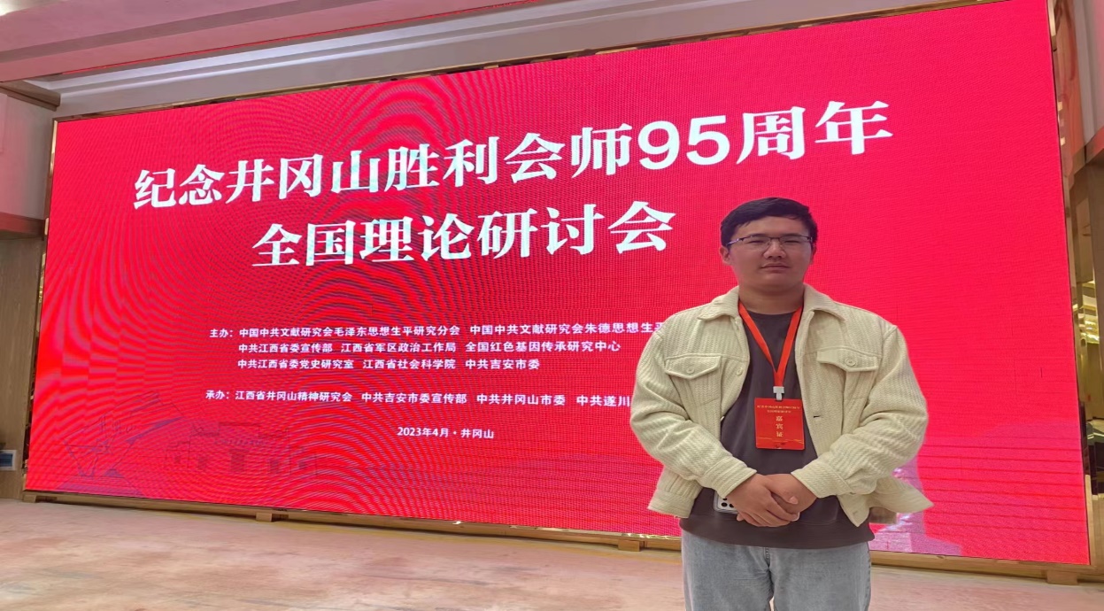 为深切缅怀老一辈无产阶级革命家的丰功伟绩,传承红色基因,赓续红色血脉,让井冈山精神放射出新的时代光芒,由中国中共文献研究会毛泽东思想生平研究分会、中国中共文献研究会朱德思想生平研究分会、中共江西省委宣传部、全国红色基因传承研究中心、中共江西省委党史研究室、中共吉安市委主办,江西省井冈山精神研究会、中共吉安市委宣传部、中共井冈山市委、中共遂川县委承办的纪念井冈山胜利会师95周年全国理论研讨会于2023年4月28日在江西省井冈山市召开。必威betway西汉姆硕士生庞诏龙作为会议优秀论文代表受邀参会并参与分组研讨。