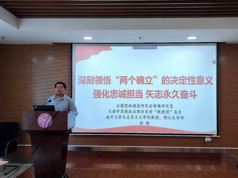 在本次授课中,张健教授旁征博引,以深厚的理论功底、丰富的鲜活事例,帮助同学们深刻领悟“两个确立”的决定性意义,为同学们带来了一次有高度、有深度的思想洗礼。课程最后,张健教授再次呼吁全体同学要增强历史主动,勇担中国青年时代大任,做有理想、敢担当、能吃苦、肯奋斗的新时代好青年,共同为中华民族伟大复兴做出贡献。