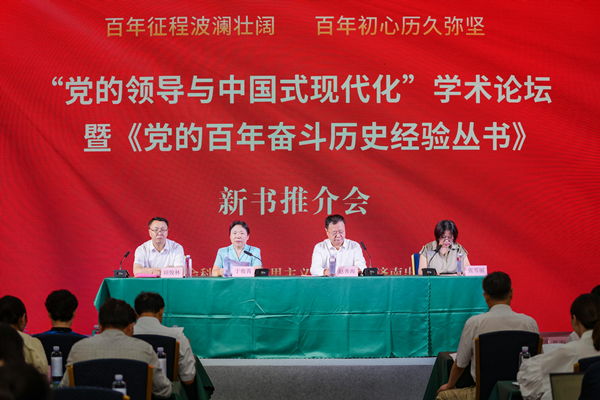 2023年7月29日,“党的领导与中国式现代化”学术论坛暨《党的百年奋斗历史经验丛书》新书推介会在济南举行。本次会议由中国社会科学院马克思主义研究院、济南出版社主办,中国社会科学院马克思主义研究院马克思主义中国化研究部、中国社会科学院大学必威betway西汉姆、济南出版社承办。中国社会科学院机关党委副书记、马克思主义研究院纪委书记、副院长于俊霄,中共济南市委宣传部二级巡视员赵善海,济南出版社党委书记、董事长田俊林出席开幕式并致辞。开幕式由济南社副总编辑张雪丽主持。