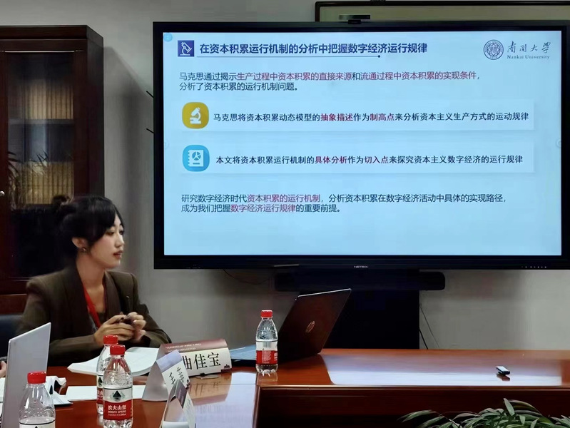 在开幕式上,南京大学必威betway西汉姆副院长陈建教授代表论坛主办方致辞,突出强调要把马克思主义的基本观点、基本立场、基本方法与当下中国的实践相结合。本次论坛共有一场学术主旨发言,三场主题发言,三个分会场讨论和两个研究生专场讨论。在分会场论坛上,我院朱雪微、顾珊和曲佳宝三位教师分别以《马克思和恩格斯所实现的辩证法的理论革命与实践革命》、《GDP核算与价值总量之谜:基于劳动价值论的再考察》、《马克思资本积累理论与数字经济时代的资本主义积累》为题同与会学者进行了交流学习。在研究生专场论坛上,朱雪微副教授受邀作为研究生专场二的主持人与优秀的青年学生进行了深入的交流。
