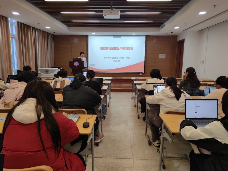 付洪还强调了推进教育公平、完善教育内容和稳步推进教育改革的必要性。她指出,在新时代中国教育发展中,明确教育的根本任务和工作重点尤为关键。她特别提到了教育改革中的“九个坚持”以及工作中的“六个下功夫”的重要性。在讲座结束时,付洪鼓励在座的学生们在新时代新征程中承担起党的使命任务,激励学生们立志做有理想、敢担当、能吃苦、肯奋斗的新时代好青年,为以中国是现代化全面推进中华民族伟大复兴贡献力量。