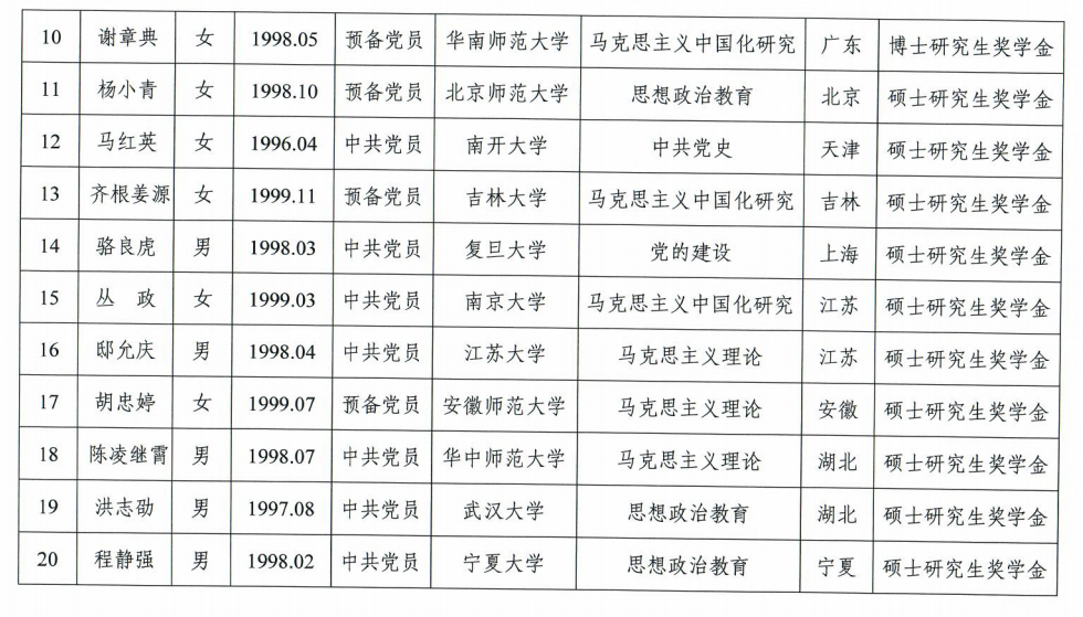 高等学校马克思主义理论学科学生奖励基金获奖名单