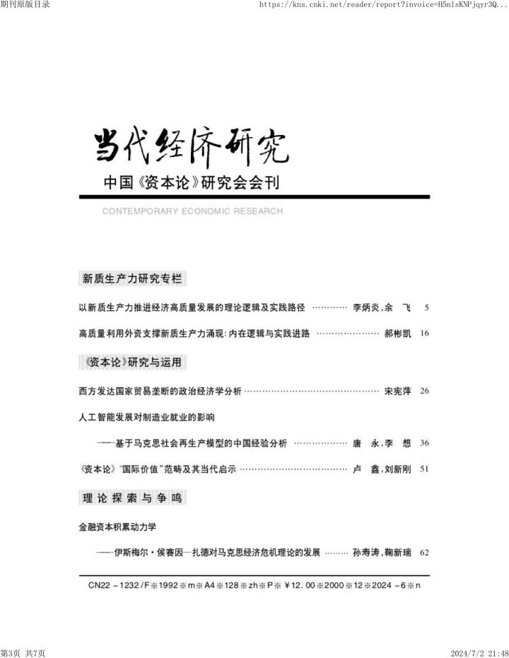 我院孙寿涛教授在《当代经济研究》发表文章《金融资本积累动力学——伊斯梅尔·侯赛因—扎德对马克思经济危机理论的发展》。文章认为,对金融部门和金融资本的运行机制与内在矛盾进行深度分析是正确理解当代金融危机的基础,伊斯梅尔·侯赛因—扎德提出的以金融资本积累动力学为内核的金融危机理论在此方面有独特贡献。他从历史和理论双重维度确证金融部门独立化的事实,以此为基础,提出金融资本动态积累理论,强调金融资本积累根源于生产资本积累趋势的内在矛盾,是这一内在根本性矛盾的历史转化形式。金融资本动态积累理论揭示出金融资本在金融部门内部系统性自我膨胀的运行机制及其界限。以此为内核,他给出解释当代金融危机的新框架,即“金融部门独立化——金融资本的动态积累(金融资本过度积累)——金融危机——长期性经济衰退”。这一解释框架将以生产资本积累内在矛盾为核心的经济危机理论拓展到以金融资本积累动力学为核心的金融危机理论,实现对马克思经济危机理论的时代发展。他的理论对中国加快金融强国建设有重要启示,一方面要规制和疏导金融部门独立化的倾向;另一方面要防范国际金融资本收割。