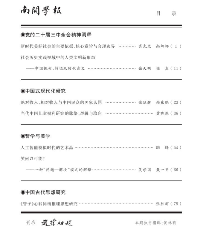 我院肖光文教授在《南开学报(哲学社会科学版)》发表文章《新时代美好社会的主要依据、核心意旨与合理边界》。文章认为,当代中国社会的展开蕴蓄着实现不同社会图景的内在线索。全面小康社会的建成,为实现社会主义条件下的“美好社会”奠定了基础。基于此,有必要对新时代美好社会的主要依据、核心意旨与合理边界进行相应规定与学理性阐释。美好社会的主要依据在于其彰显了中国共产党人一以贯之的奋斗主题,表征了新时代社会主义现代化建设的阶段性历史任务,凝聚了中国广大民众的情感共鸣与价值共识。美好社会的核心意旨是为实现人民美好生活需要奠基的社会,是全体人民在共同富裕上取得实质性进展的社会,是追求人的自由全面发展的社会。美好社会的合理边界在于其不是社会主要矛盾消失的社会,不是平均主义社会,在根本上与中国特色社会主义社会的生产力发展水平相适应。