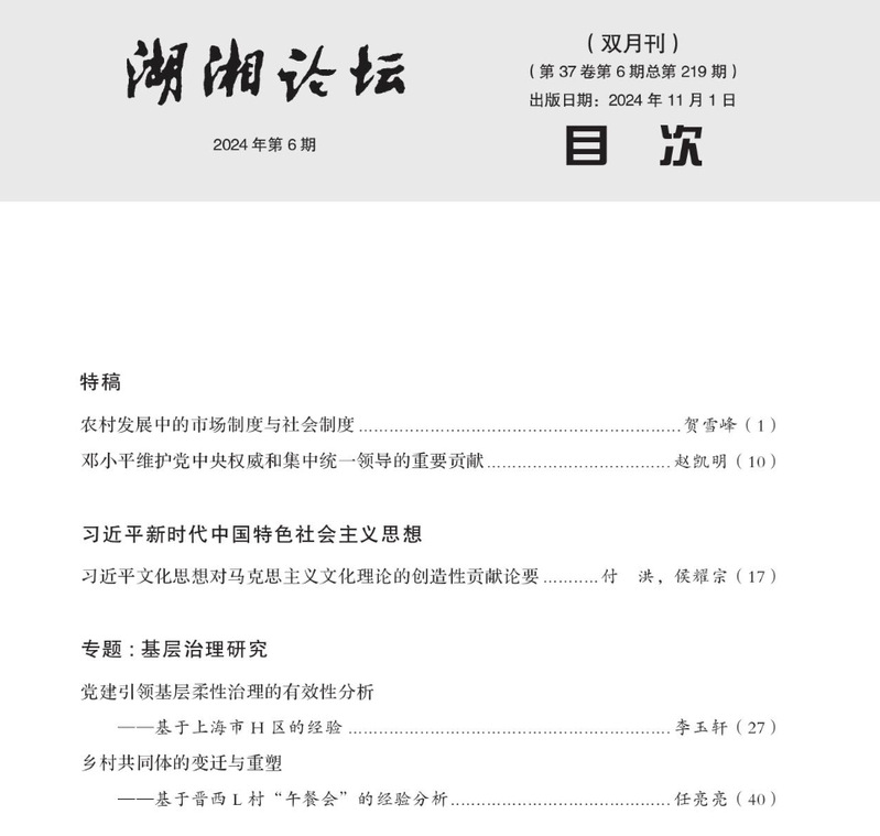 我院付洪教授在《湖湘论坛》发表文章《习近平文化思想对马克思主义文化理论的创造性贡献论要》。文章认为,习近平文化思想内涵丰富、论述深刻、博大精深,是把马克思主义基本原理同中国具体实际、同中华优秀传统文化相结合的光辉典范。习近平文化思想坚守马克思主义“魂脉”和中华优秀传统文化“根脉”,坚持在“守正”的基础上“创新”,对马克思主义文化理论作出了诸多创造性贡献。习近平文化思想科学回答了“建设什么样的文化”和“如何进行文化建设”的重大理论和实践问题,明确提出“要坚定文化自信,推动社会主义文化繁荣兴盛”的战略要求,同时提出“第二个结合”的重大判断和“建设中华民族现代文明”的新使命,使我们党对中华文明发展方向和人类文明发展规律的认识达到了全新高度,有利于推动社会主义文化强国建设开创新局面、实现新跨越。