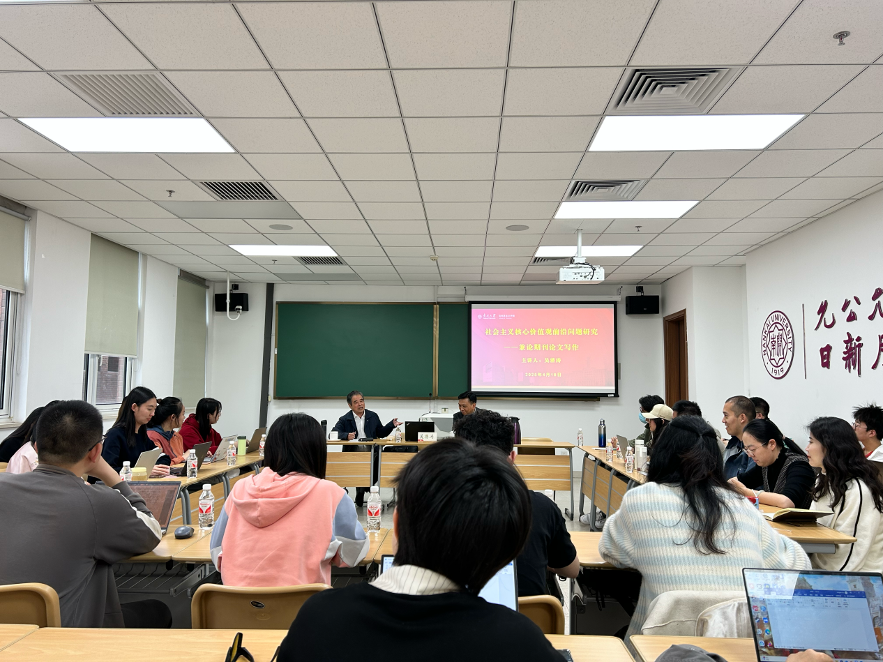 吴潜涛教授还向大家分享了自己从事马克思主义理论研究的经验感悟。他以“认识一个人”为例,启发同学们在把握概念时应该如同认识一个人一般,先从本身出发,再从其所处的社会关系进行考量,即先从概念本身、对概念的内在规定性的考察出发,尔后在相应的理论体系中进一步把握所研究的概念。