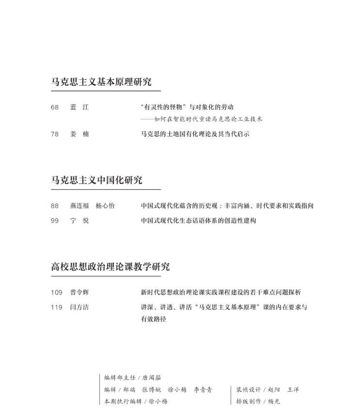 我院宁悦老师在《马克思主义理论学科研究》发表文章《中国式现代化生态话语体系的创造性建构》。文章认为,中国共产党在生态文明理论与实践探索中,始终坚持以马克思主义为指导,批判借鉴西方现代化生态话语,结合我国生态文明建设具体实际,以标识性概念、中国化时代化的理论形成了中国式现代化生态话语体系。与西方现代化生态话语相比,中国式现代化生态话语体系在本体论方面形成了“生态—保护”话语,在价值论方面形成了“生态—价值”话语,在方法论方面形成了“生态—治理”话语,并在这三个层面实现了对西方现代化生态话语的批判与超越,是我国生态文明建设领域“术语的革命”与话语叙事的创新,是既具有中国特色又兼具世界意义的“融通中外的新概念新范畴新表述”。