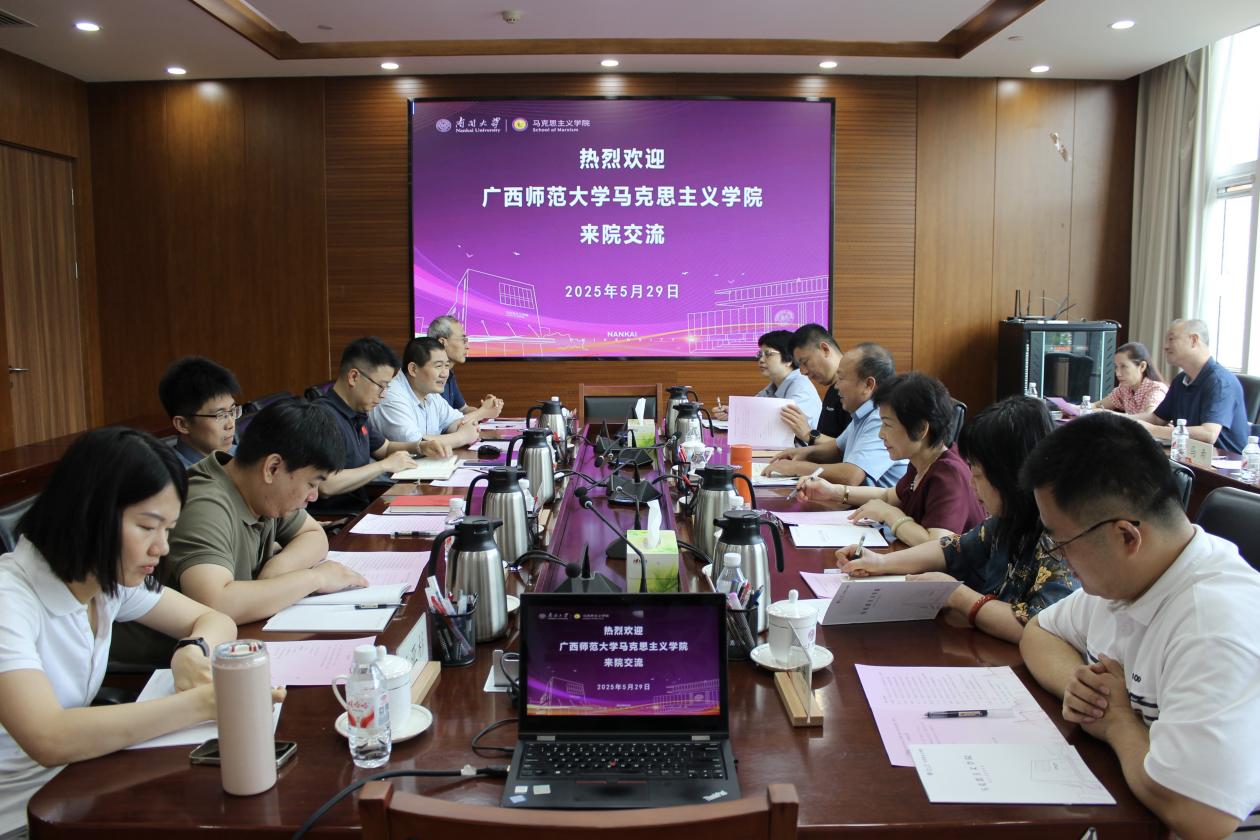 (通讯员:刘慧淼,摄影:张梦丽)529日上午,广西师范大学必威betway西汉姆纲要教研室主任、副教授唐咸明等一行到我院开展调研交流。学院副院长兰昊、纲要教研室主任兼党支部书记张健、新时代思想政治理论课改革创新研究中心主任刘一博、纲要教研室党支部组织委员任梦磊、教师王亚衫和学院办公室主任张守贵一起参加交流。