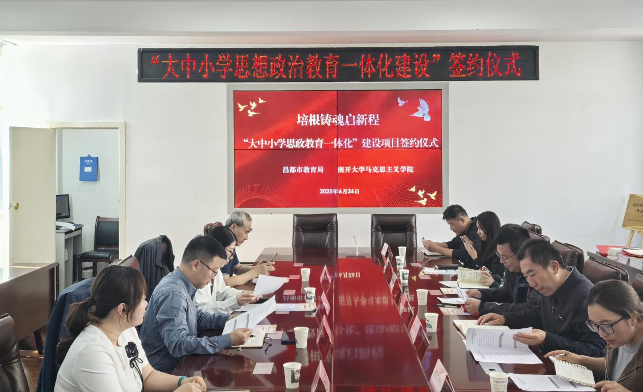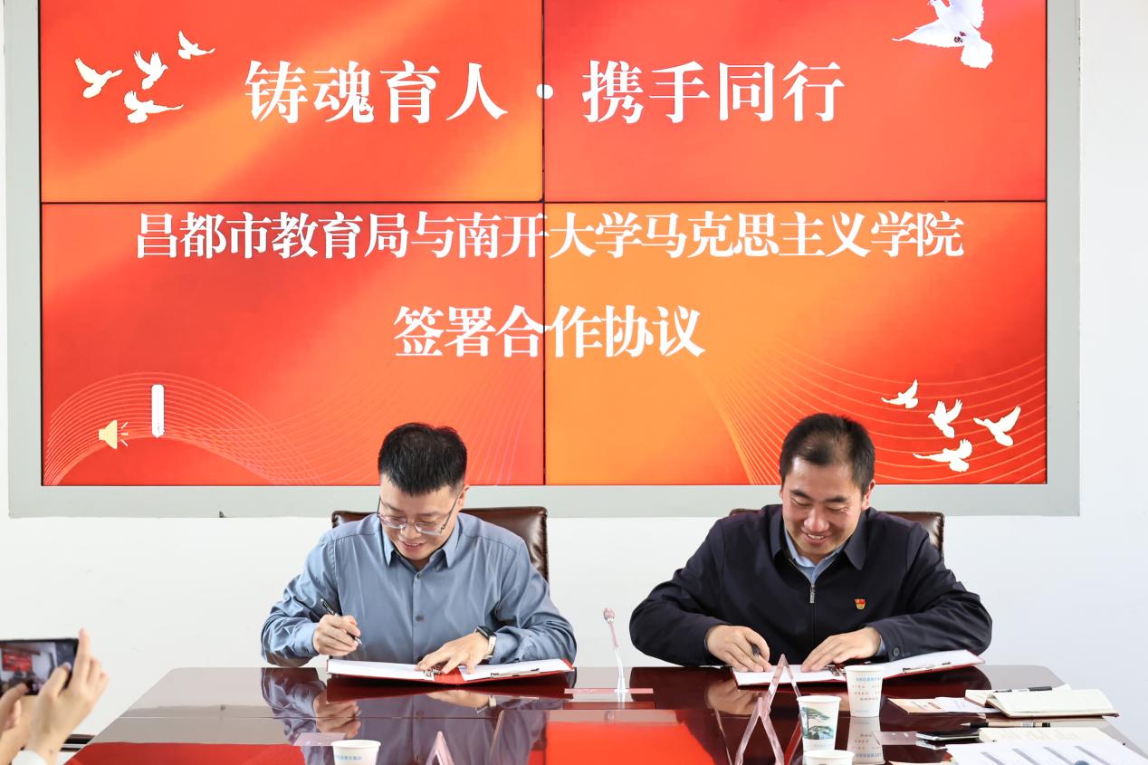周凯和兰昊代表双方签订了大中小学思政教育一体化建设合作协议。双方将围绕思政课教师一体化教研备课,丰富线上线下思政教育资源,分层分类开展教师培训和围绕思政课题研究、课程改革创新,昌都市历史文化资源发掘与运用等方面开展合作。