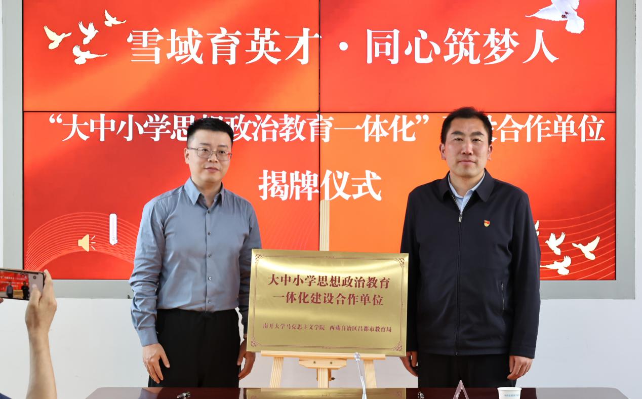为深入贯彻落实习近平总书记对学校思政课建设作出的重要指示,深入推进大中小学思想政治教育一体化建设,学院副院长兰昊近日代表学院带队前往西藏自治区昌都市,与当地教育局、实验小学开展大中小学思政教育一体化建设合作。昌都市教育局党组副书记、局长周凯,昌都市教育局党组副书记、副局长邵树斌出席。教育局内各相关部门同志,人民网文华在线有关负责同志和我市“津石榴”西部支教帮扶计划思政课支教团部分代表一同参加。建设合作仪式由副局长邵树斌主持。