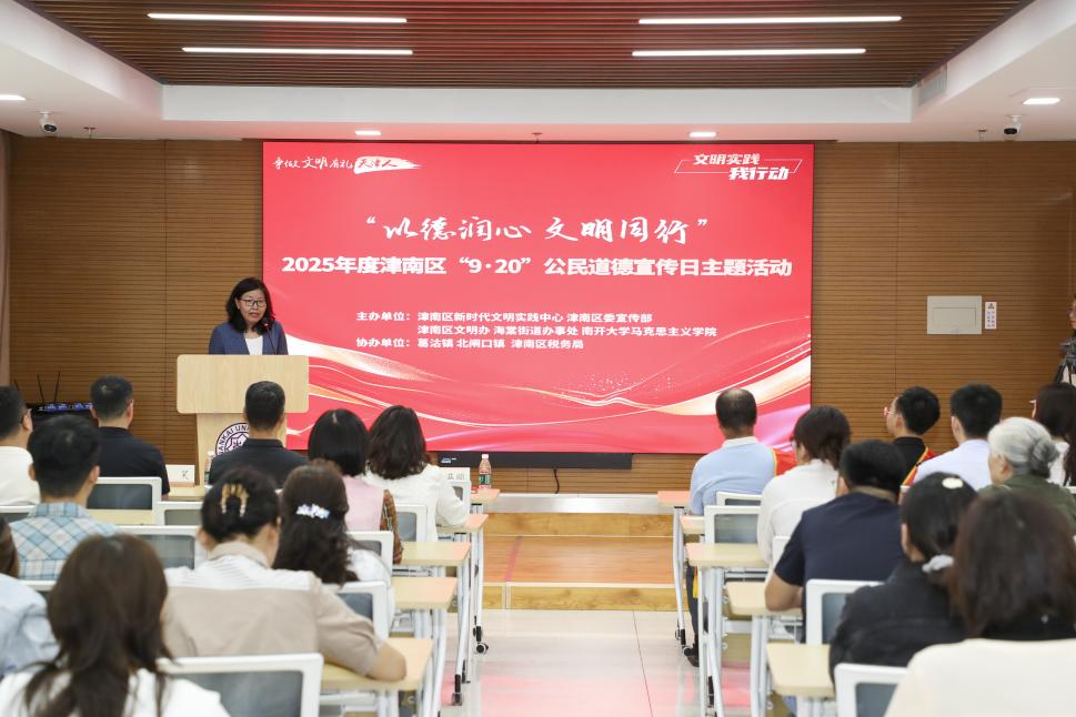 2025年9月19日,在第23个全国公民道德宣传日来临之际,“以德润心 文明同行”2025年度津南区“9·20”公民道德宣传日主题活动,在必威betway西汉姆举办。活动以“身边榜样讲故事、校地联动传文明”为核心,用鲜活事迹传递道德温度,让文明新风在百年学府落地生根。津南区道德模范、相关街镇新时代文明实践所站负责人及群众代表和学院师生代表近百人参加。