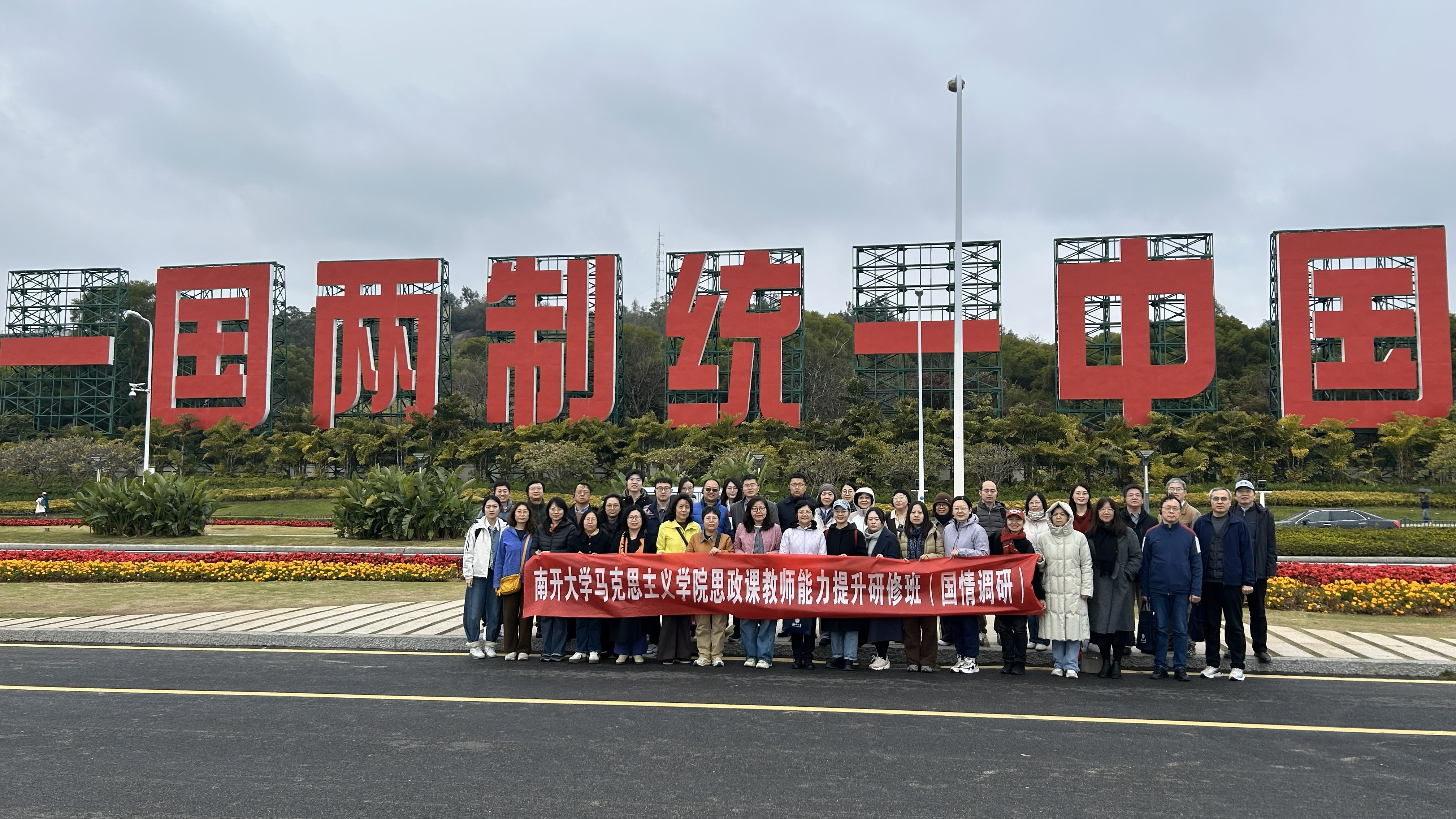 当日下午,研修班来到厦门环岛路“一国两制 统一中国”标志点。面对金门方向矗立的巨幅标语,老师们深刻认识到“一国两制”伟大构想的战略意义和实践价值,进一步增强了维护国家主权和领土完整的责任感和使命感。大家纷纷表示,要在思政课教学中深入阐释“一国两制”方针的历史背景、丰富内涵和重大意义,引导学生自觉做祖国统一的坚定支持者和积极推动者。
