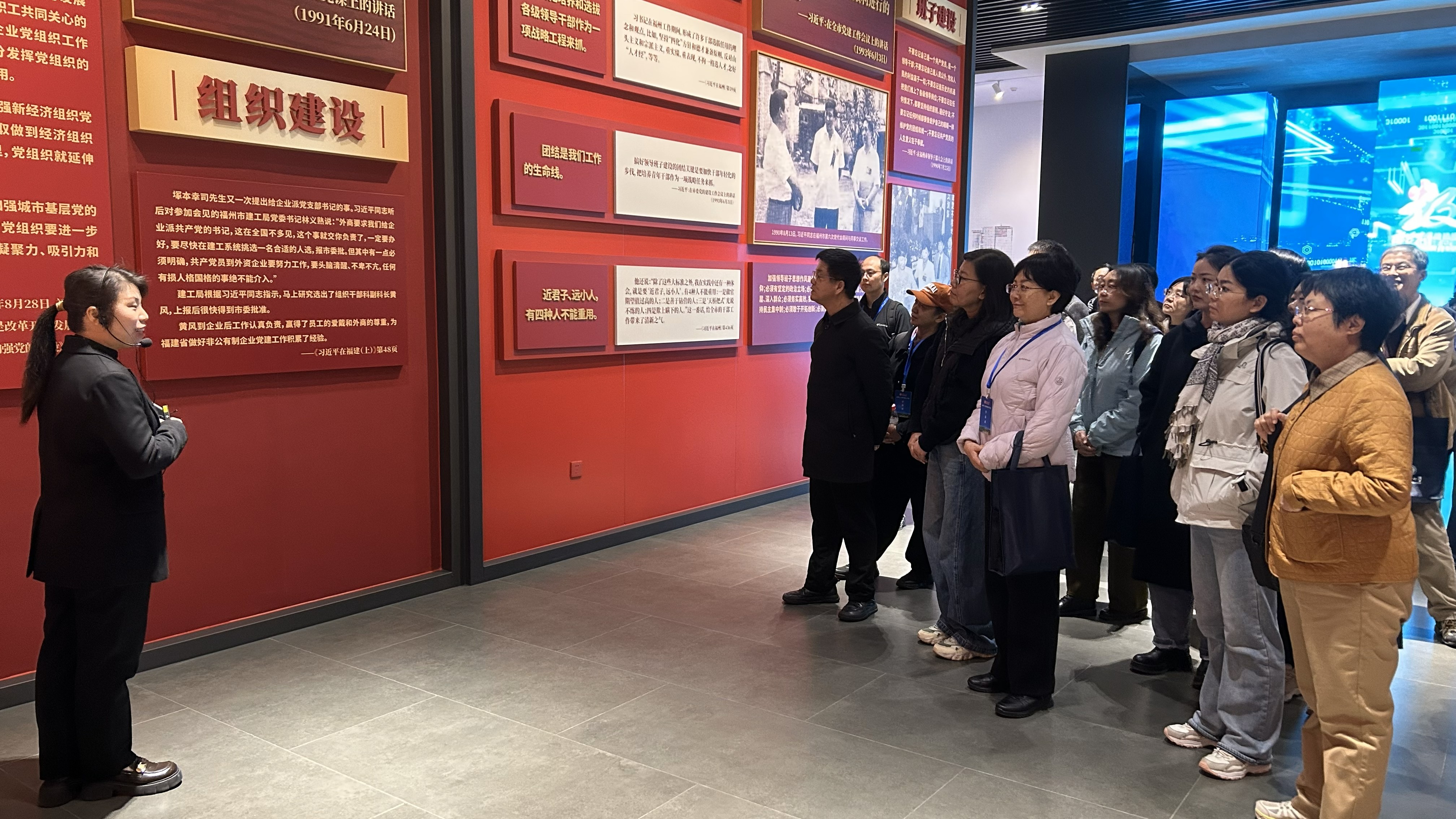 1月29日,研修班首站来到福州市“3820”战略工程实施30周年成就展馆。1992年,时任福州市委书记习近平主持编制《福州市20年经济社会发展战略设想》,为福州科学谋划了跨世纪发展蓝图。展馆通过“战略擘画”“重大实践”“赓续奋斗”三大篇章,全方位展示了“3820”战略工程实施30年来福州在经济、政治、文化、社会、生态和党的建设等领域取得的辉煌成就。老师们在珍贵的历史文献、影像资料和实物展品前驻足观看,深刻领会习近平同志在福州工作期间提出的重要理念、作出的重大实践探索,深刻感悟其高瞻远瞩的战略思维、求真务实的工作作风和以人民为中心的发展思想。